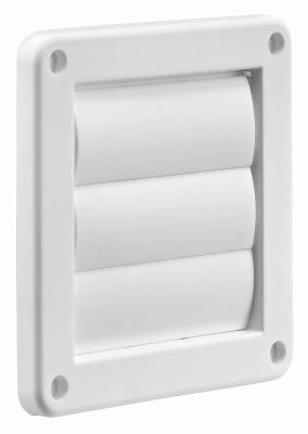 The 4 inch white plastic exhaust wall louvered vent is ideal for venting through the wall for new and replacement installations. This vent is used for clothes dryer exhaust, bath fan exhaust and other general venting applications. The exhaust vent allows for maximum exhaust airflow and prevents back drafts while the vent is not in use. The plastic vent has a UV additive to prevent premature fading due to the sun. Other models and colors available.